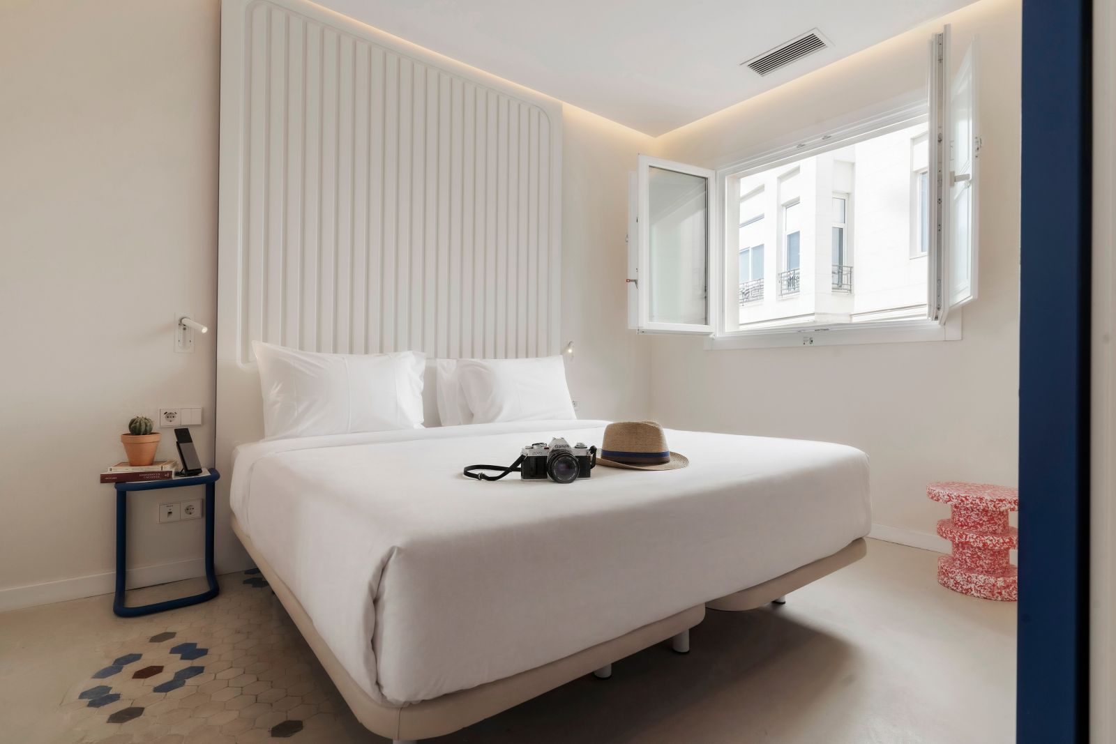 Nuestras habitaciones de diseño son más pequeñas que la media en España. Renunciar a unos pocos m2 nos permite ofrecerte más y mejores servicios, a ti… y al planeta. Menos es más.